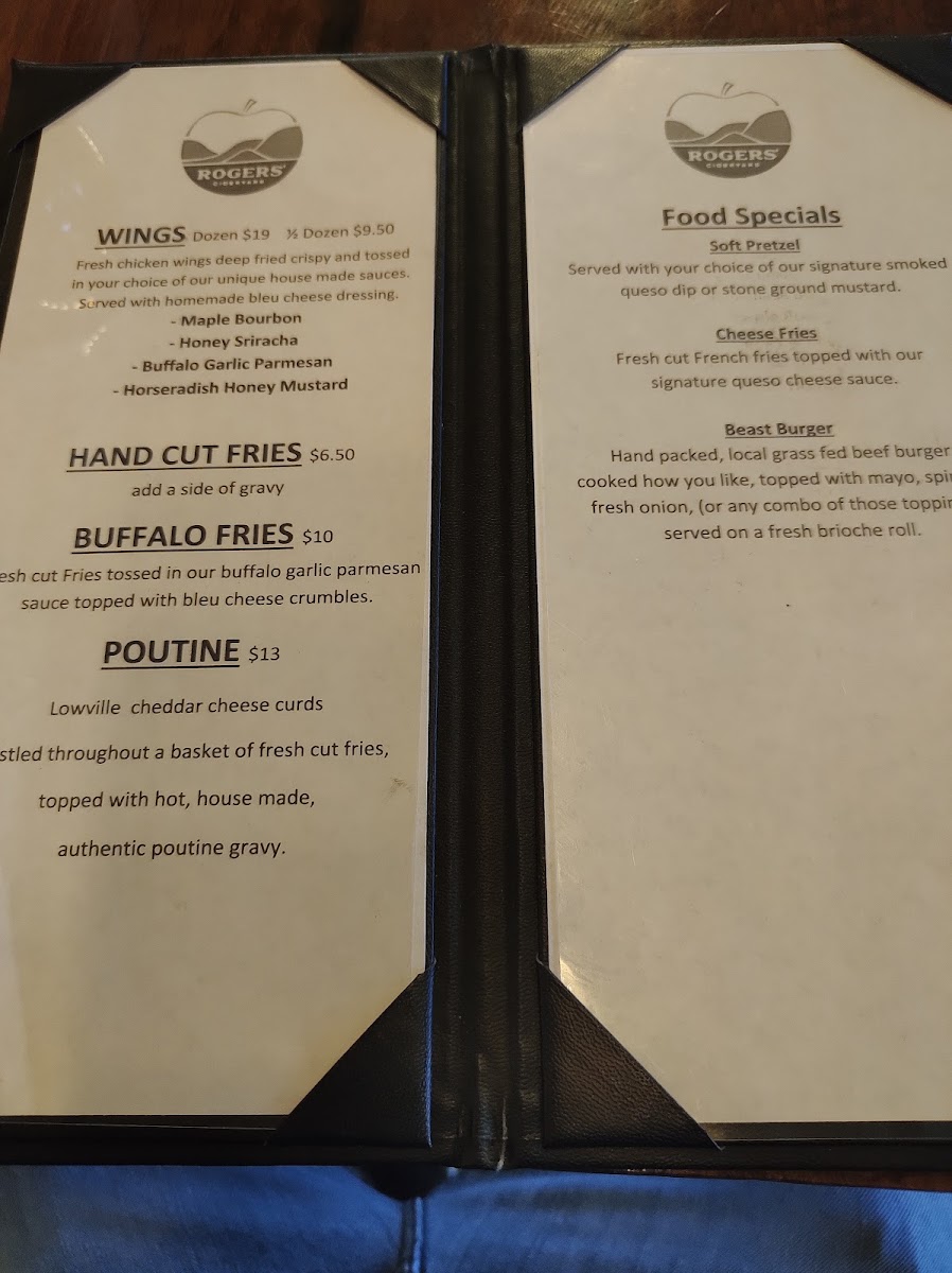 Welcome to Rogers' Cideryard, a charming retreat nestled in Johnstown, NY, where culinary artistry meets a cozy atmosphere. This hidden gem serves up a diverse menu that celebrates the local taste, featuring expertly crafted dishes like their renowned wings and made-from-scratch fries. Diners rave about the honey Sriracha sauce that perfectly complements the crispy, juicy wings—truly some of the best around.